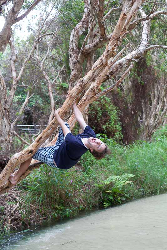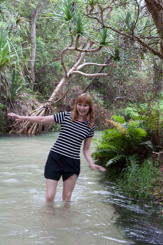Toiletoplevelser i Australien kan dog af og til være en spændende oplevelse, da man aldrig helt ved om der kommer til at være edderkopper, øgler, kakkelakker eller andre store insekter til at holde en med selskab. Tilsyneladende er træer, planter og insekter såvel som nogle dyrearter væsentligt større her i Australien, hvilket betyder, at her er der en mellemting mellem fluer, hvepse og myg, der er på størrelse med en humlebi og som desværre stikker væsentligt hårdere end myg, og ligeledes har det med at forfølge deres ofre meget insisterende. Så jeg har for en stund sat min næstekærlighed til stikkende kæmpefluer på standby, og har opdaget et hidtil ubenyttet talent for at klaske fluer. Faktisk var jeg den absolut bedste til denne disciplin, da Niklas og jeg for et par dage siden var på den guidede tur sammen med 10 andre personer på Fraser Island. Meget underligt at blive betragtet som personen med den mest dræbende præcision og timing, men vi har vel alle sider af os selv, som kun sjældent dukker op til overfladen. I øvrigt kunne fluerne bare have holdt sig væk fra mig – de havde fået en advarsel…