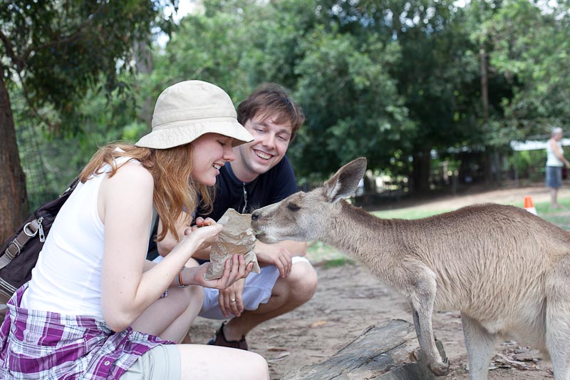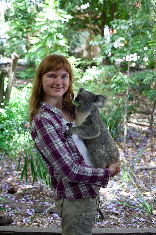 Vi fløj fra Sydney til Brisbane den 10. november, og boede de første 3 nætter hos Patrick, en af Niklas venner fra studietiden i Brisbane. Hyggeligt for Niklas at møde sin australske ven igen, og Patricks hustru var også meget gæstfri. Desuden havde de en lille søn på 5 måneder, og to dejlige siameserkatte, så det føltes meget hjemligt. I Brisbane var vi bl.a. i Lone Pine Koala Sanctuary, hvor jeg prøvede at holde en koala samt håndfodre kænguruer og vi betragtede alle de andre mange dyr, ikke mindst den meget aktive platypus, der var svær at løsrive sig fra igen. Niklas fik selvfølgelig taget en masse billeder af alle dyrene, der var mere eller mindre fotogene